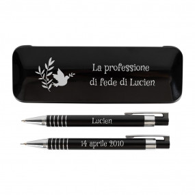 Una penna personalizzata per un tocco unico! Scegli una splendida penna personalizzata con il tuo nome, soprannome o un breve messaggio inciso tra la nostra vasta gamma di prodotti. Questi accessori da ufficio, sempre molto apprezzati su Ocadeau, ti permetteranno di lavorare e scrivere con eleganza e serenità! Perfetta per tuo padre, il tuo partner o una persona speciale, questa penna personalizzata è il regalo ideale per aggiungere un tocco di classe e unicità. Completa il tuo dono con un accendino personalizzato, e avrai un set perfetto, ricco di personalità e stile.