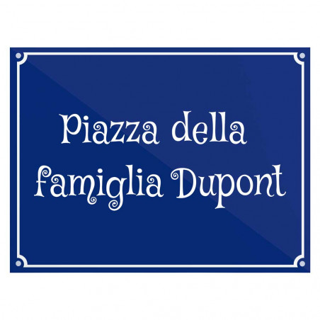 La targa è un pratico cartello della città. Già usato nel Medioevo, qui è rivisitato da voi e soprattutto per voi. Da un tratto di umorismo o un tributo a una persona di famiglia, personalizzare una bella targa di strada a vostra scelta. Offriamo 2 grandi modelli di targa. Il modello standard che troviamo nella maggior parte delle principali città e il modello parigino ispirato alla placca rue des Champs Elysées. Seleziona il modello di cui hai bisogno.