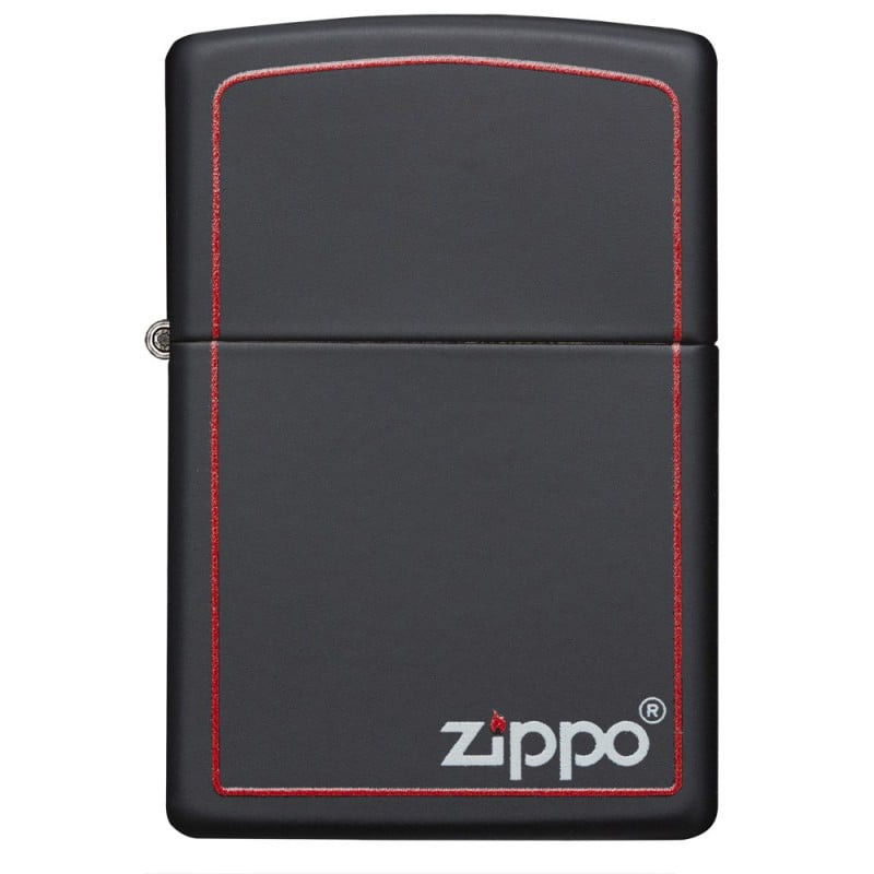 Elegante accendino della marca Zippo con il suo colore nero opaco e bordo rosso.Fai incidere il testo che preferisci al centro dell'accendino a benzina.
