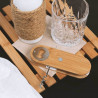 Decapsulatore e spina disegnata in legno bambù personalizzato con incisione di testo.