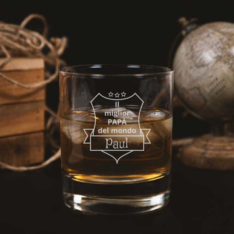 Personalizza questo tumbler con il tuo testo per fare un regalo esclusivo ai tuoi cari. Per un ventilatore Whisky, personalizzerai il disegno del distintivo di questo vetro e così potrai offrire il regalo più originale è. Come un'idea occhiali alcool per il giorno del padre in particolare, si farà emulazioni.