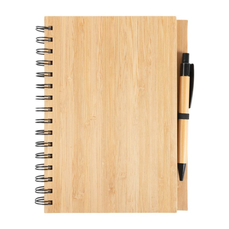 Scegli questo pratico quaderno in legno di bambù.Questo taccuino presenta una copertina e un dorso in legno con la tua personalizzazione sulla copertina.Questo pratico taccuino viene fornito con una penna a sfera in legno di bambù abbinata.
