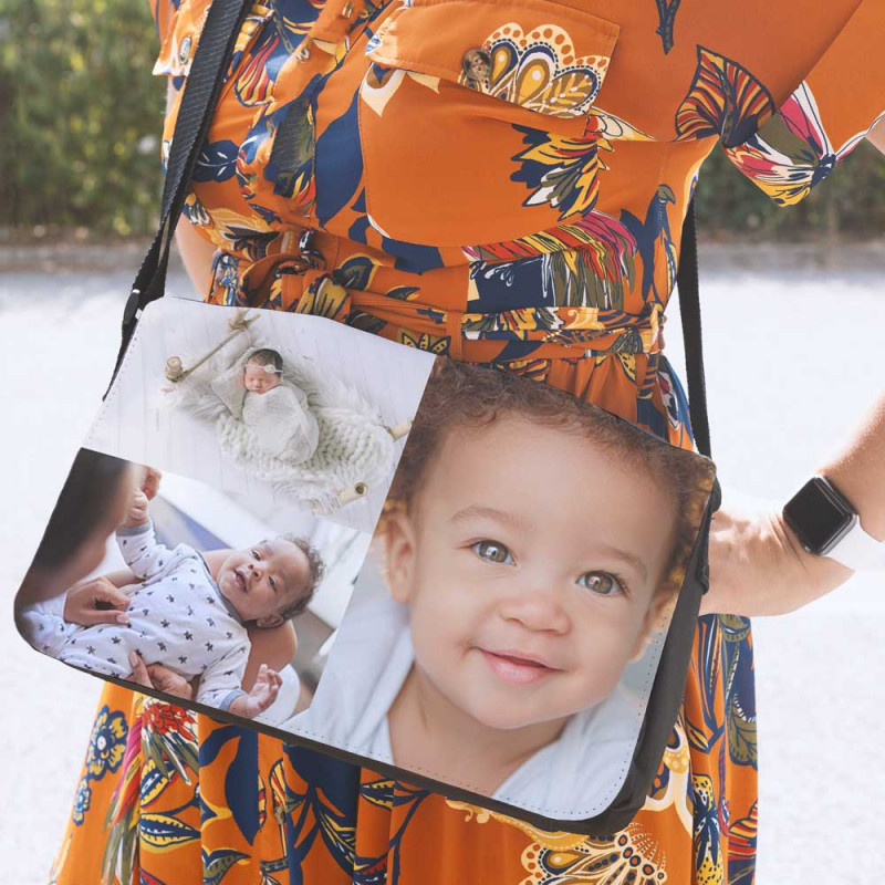 Mostra la tua creatività con la tua borsa che ti accompagna ogni giorno al lavoro o alla scuola. Questa borsa di qualità è migliorata con le tue foto pèle-mêle su quasi tutta la sua patta
