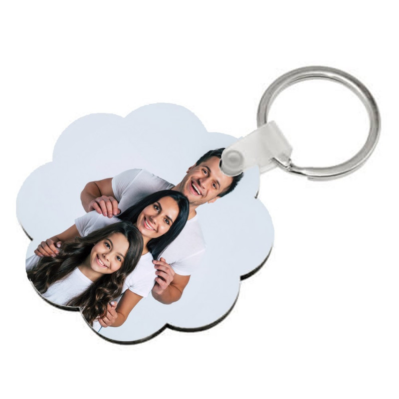 Portachiavi originale a forma di fiore con stampa fotografica.