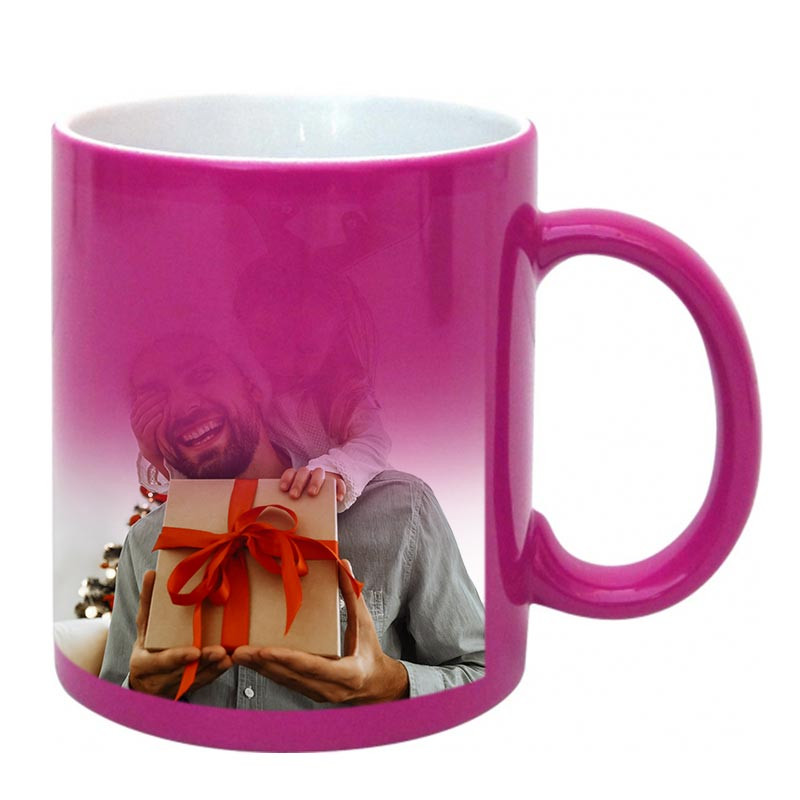 Sotto l'effetto del calore la tazza magica che è rosa-violetto permetterà di visualizzare la tua foto. Riempi la tazza della tua bevanda calda preferita e lasciala agire