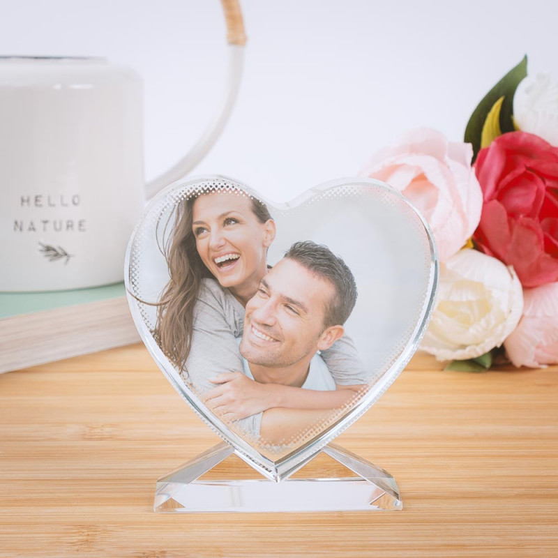 Regalo unico per gli innamorati: un cuore di vetro personalizzato con la tua foto e il tuo testo.